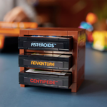 For extra nostalgia, we get to build three game cartridges that have stickers of the originals but with LEGO® imagery. I love the way they did the spaceship on the asteroid’s cartridge in Classic Space colours to look like the Galaxy Explorer. The cartridges are designed to fit into the console as the real ones did when you wanted to play the game. We also get to build a cartridge holder for them.