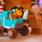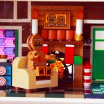 Book 2 contains the Gingerbread House. I really enjoyed building the house because of all the lovely details inside and outside of the house. A few interesting things that stood out in the build were the gingerbread baby, the frosted candy-like roof. The interior has amazing coloured glitter 1×1 bricks, which really come to life when there is light shining through them. The upstairs section has a cosy room with a cute bath and toilet. The downstairs section has a cosy kitchen and lounge area complete with a fire-place with a light brick, comfortable sofa and kitchenette.